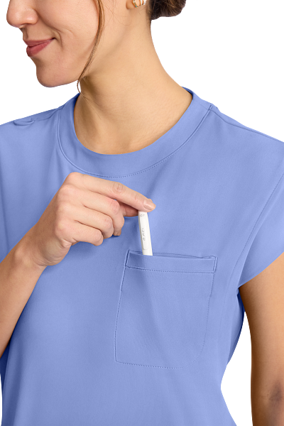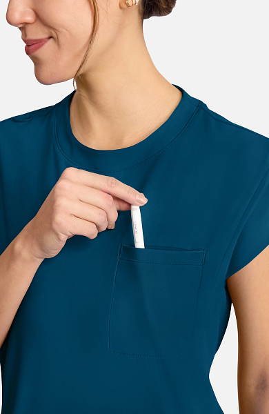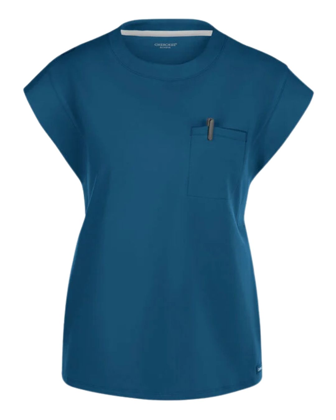 No sleeves! This fresh, fashionable scrub doubles as a chic top, with comfort-tech fabric and a hefty dose of Spandex for a whole new kind of stretch. A Raglan-style design and slightly cropped hem allows extra room for movement and breathability.